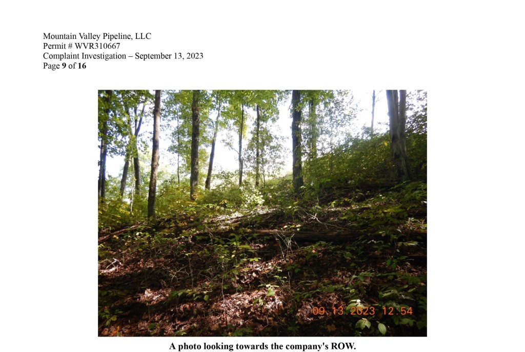 […] While the MVP and George Eidel, Director of the Office of Emergency Services for Doddridge County have not responded to questions as to what happened on the ridge above Big Issac, drone footage taken in early December reveals an extensive repair of hundreds of yards of the MVP ROW. It has been reseeded since West Virginia Department of Environmental Protection (WVDEP) Inspector Timothy Wine took a photo of the ROW on September 13. His photo (below) was taken in response to a complaint about flood damage from a September 9 storm likely caused by the MVP. […]